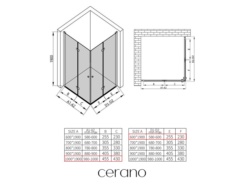 W ramach tej serii oferujemy szeroki wybór wymiarów, aby sprostać zróżnicowanym potrzebom naszych klientów. Wszystkie kabiny prysznicowe, drzwi i parawany Cerano są w pełni kompatybilne z brodzikami Cerano o tych samych wymiarach, co zapewnia bezproblemowy montaż i idealne dopasowanie. Ponadto kabinę prysznicową można elastycznie zamontować – na pasującym brodziku lub bezpośrednio na podłodze, w zależności od preferencji i wyposażenia łazienki.