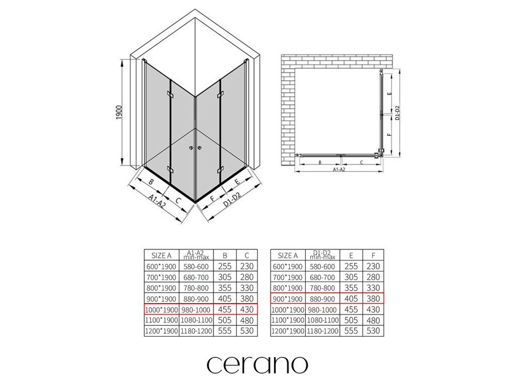 W ramach tej serii oferujemy szeroki wybór wymiarów, aby sprostać zróżnicowanym potrzebom naszych klientów. Wszystkie kabiny prysznicowe, drzwi i parawany Cerano są w pełni kompatybilne z brodzikami Cerano o tych samych wymiarach, co zapewnia bezproblemowy montaż i idealne dopasowanie. Ponadto kabinę prysznicową można elastycznie zamontować – na pasującym brodziku lub bezpośrednio na podłodze, w zależności od preferencji i wyposażenia łazienki.