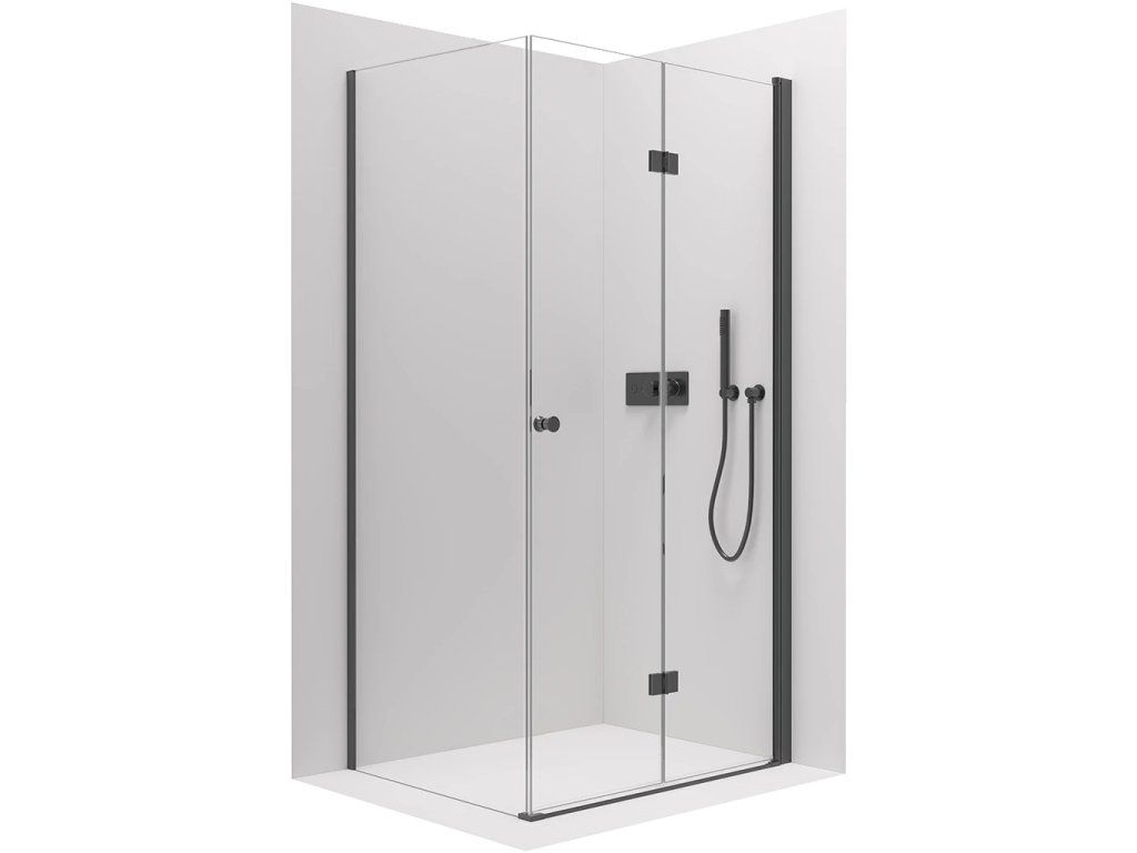 CERANO - Kabina prysznicowa Volpe L/R - 6 mm - matowa czerń, szkło transparentne - 100x90x190 cm - składana