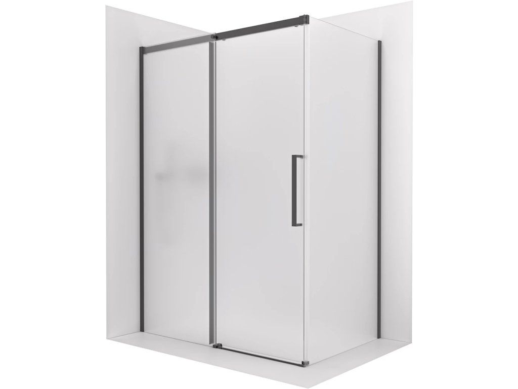 CERANO - Kabina prysznicowa Lantono - lewa - 8 mm - Soft Close - czarny mat, szkło mleczne - 110x100 cm - przesuwna