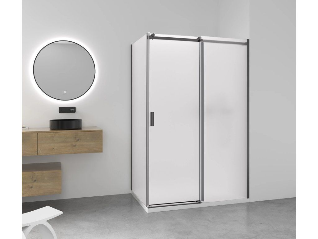 CERANO - Kabina prysznicowa Santoro - prawa - 6 mm - matowa czarna, szkło mrożone - 110x90 cm - przesuwna