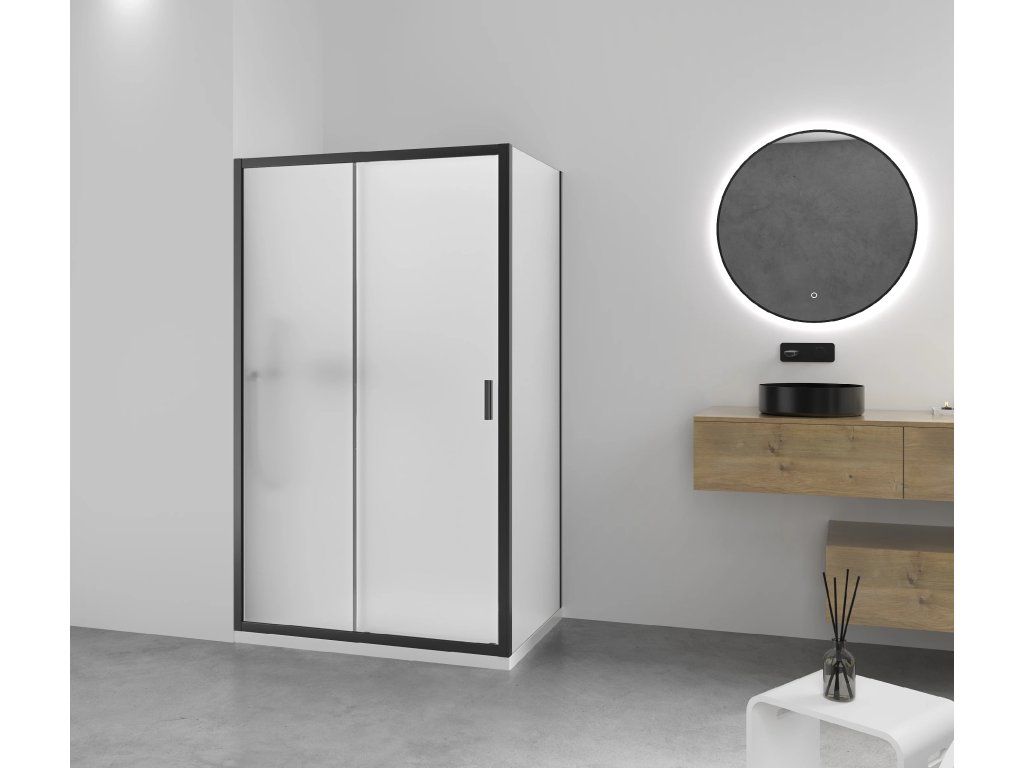 CERANO - Kabina prysznicowa Varone LINE L/R - 6 mm - matowa czarna, szkło mrożone - 110x70 cm - przesuwna