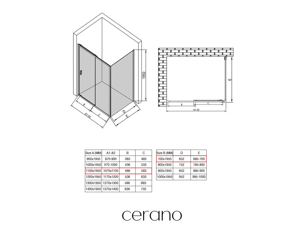W ramach tej serii oferujemy szeroki wybór wymiarów, aby sprostać zróżnicowanym potrzebom naszych klientów. Wszystkie kabiny prysznicowe, drzwi i parawany CERANO są w pełni kompatybilne z brodzikami CERANO o tych samych wymiarach, co zapewnia bezproblemowy montaż i idealne dopasowanie. Ponadto kabinę można elastycznie zamontować – na pasującym brodziku lub bezpośrednio na podłodze, w zależności od preferencji i wyposażenia łazienki.