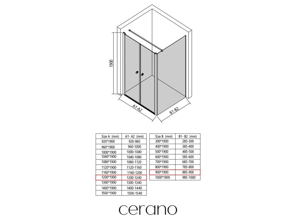 W ramach tej serii oferujemy szeroki wybór wymiarów, aby sprostać zróżnicowanym potrzebom naszych klientów. Wszystkie kabiny prysznicowe, drzwi i parawany CERANO są w pełni kompatybilne z brodzikami CERANO o tych samych wymiarach, co zapewnia bezproblemowy montaż i idealną koordynację.