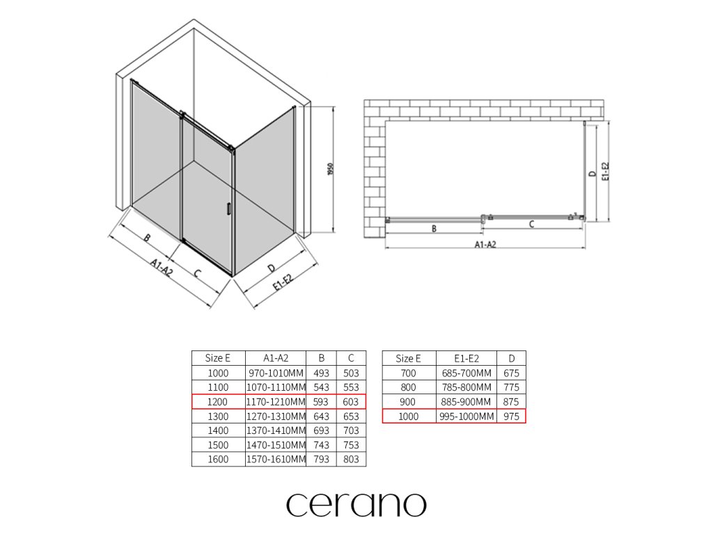 W ramach tej serii oferujemy szeroki wybór wymiarów, aby sprostać zróżnicowanym potrzebom naszych klientów. Wszystkie kabiny prysznicowe, drzwi i parawany CERANO są w pełni kompatybilne z brodzikami CERANO o tych samych wymiarach, co zapewnia bezproblemowy montaż i idealne dopasowanie. Ponadto kabinę można elastycznie zamontować – na pasującym brodziku lub bezpośrednio na podłodze, w zależności od preferencji i wyposażenia łazienki.