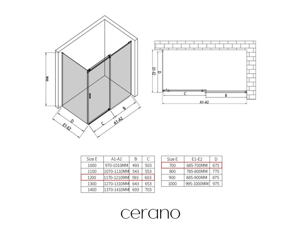 W ramach tej serii oferujemy szeroki wybór wymiarów, aby sprostać zróżnicowanym potrzebom naszych klientów. Wszystkie kabiny prysznicowe, drzwi i parawany CERANO są w pełni kompatybilne z brodzikami CERANO o tych samych wymiarach, co zapewnia bezproblemowy montaż i idealne dopasowanie. Ponadto kabinę można elastycznie zamontować – na pasującym brodziku lub bezpośrednio na podłodze, w zależności od preferencji i wyposażenia łazienki.