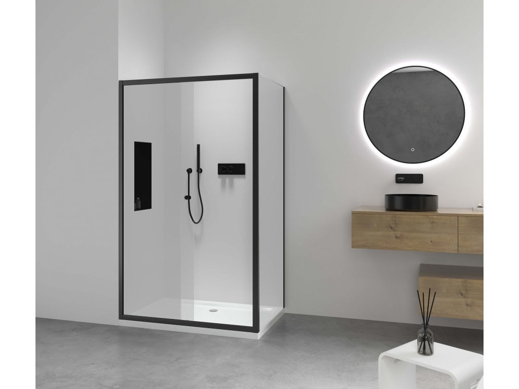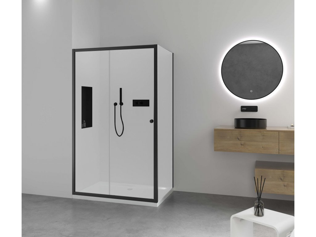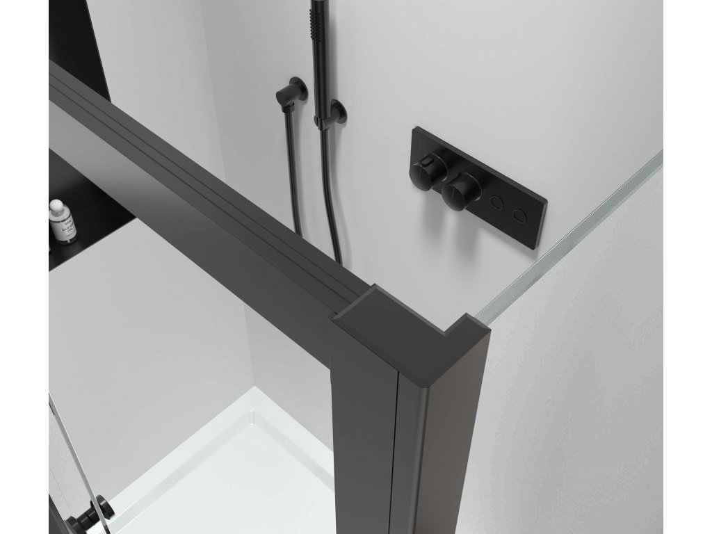CERANO - Kabina prysznicowa Varone POINT L/R - 6 mm - matowa czarna, szkło transparentne - 120x100x195 cm - przesuwna
