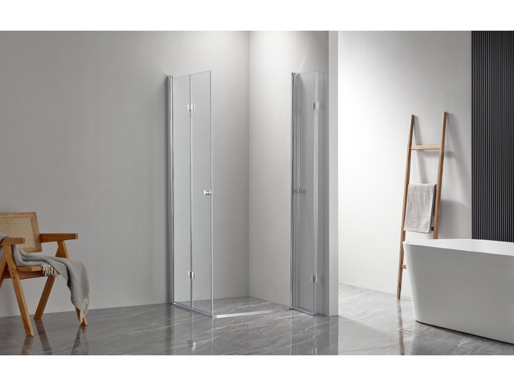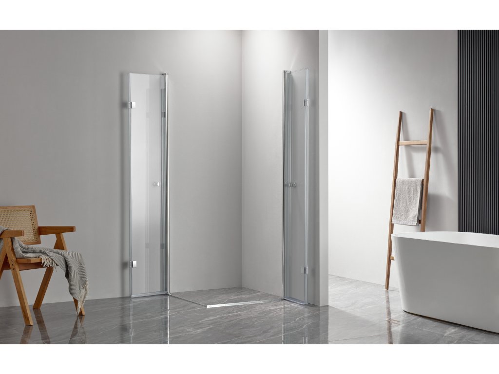 Drzwi posiadają składany system otwierania, idealny do mniejszych łazienek z ograniczoną przestrzenią przed prysznicem. Drzwi zawieszone są na wpuszczanych zawiasach z pneumatycznym systemem podnoszenia.