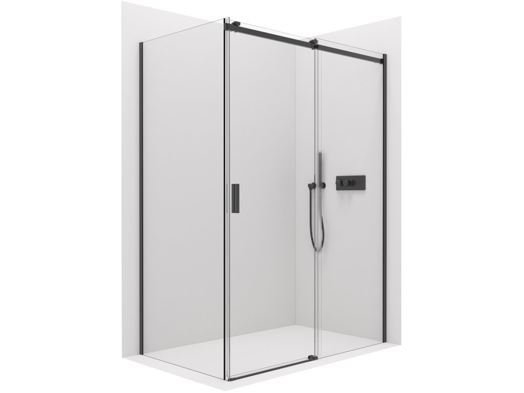 CERANO - Kabina prysznicowa Santoro L/P - 6 mm - matowa czarna, szkło transparentne - 130x80x195 cm - przesuwna