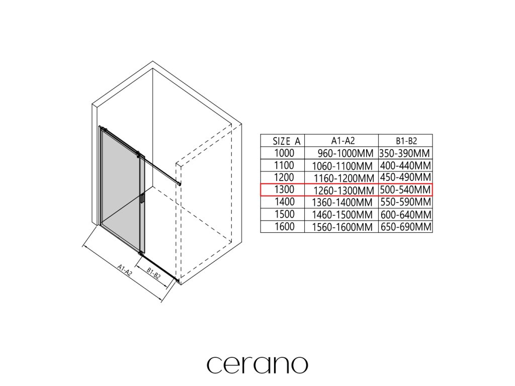 W ramach tej serii oferujemy szeroki wybór wymiarów, aby sprostać zróżnicowanym potrzebom naszych klientów. Wszystkie kabiny prysznicowe, drzwi i parawany CERANO są w pełni kompatybilne z brodzikami CERANO o tych samych wymiarach, co zapewnia bezproblemowy montaż i idealne dopasowanie. Ponadto kabinę można elastycznie zamontować – na pasującym brodziku lub bezpośrednio na podłodze, w zależności od preferencji i wyposażenia łazienki.