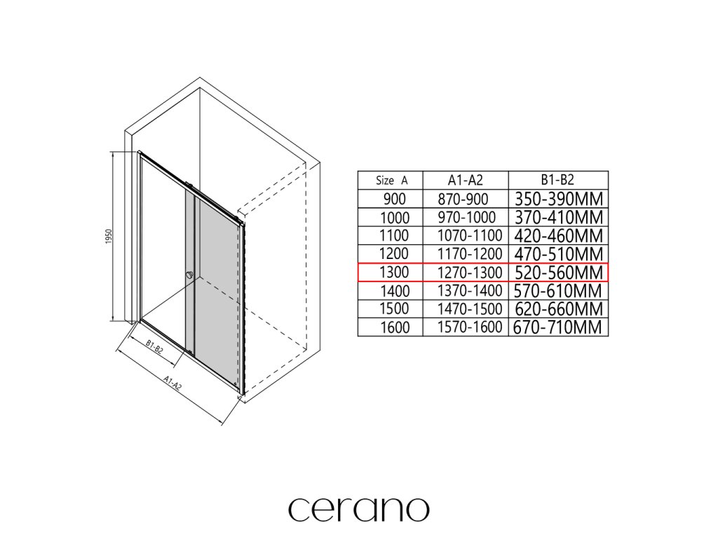 W ramach tej serii oferujemy szeroki wybór wymiarów, aby sprostać zróżnicowanym potrzebom naszych klientów. Wszystkie kabiny prysznicowe, drzwi i parawany CERANO są w pełni kompatybilne z brodzikami CERANO o tych samych wymiarach, co zapewnia bezproblemowy montaż i idealne dopasowanie. Ponadto kabinę można elastycznie zamontować – na pasującym brodziku lub bezpośrednio na podłodze, w zależności od preferencji i wyposażenia łazienki.