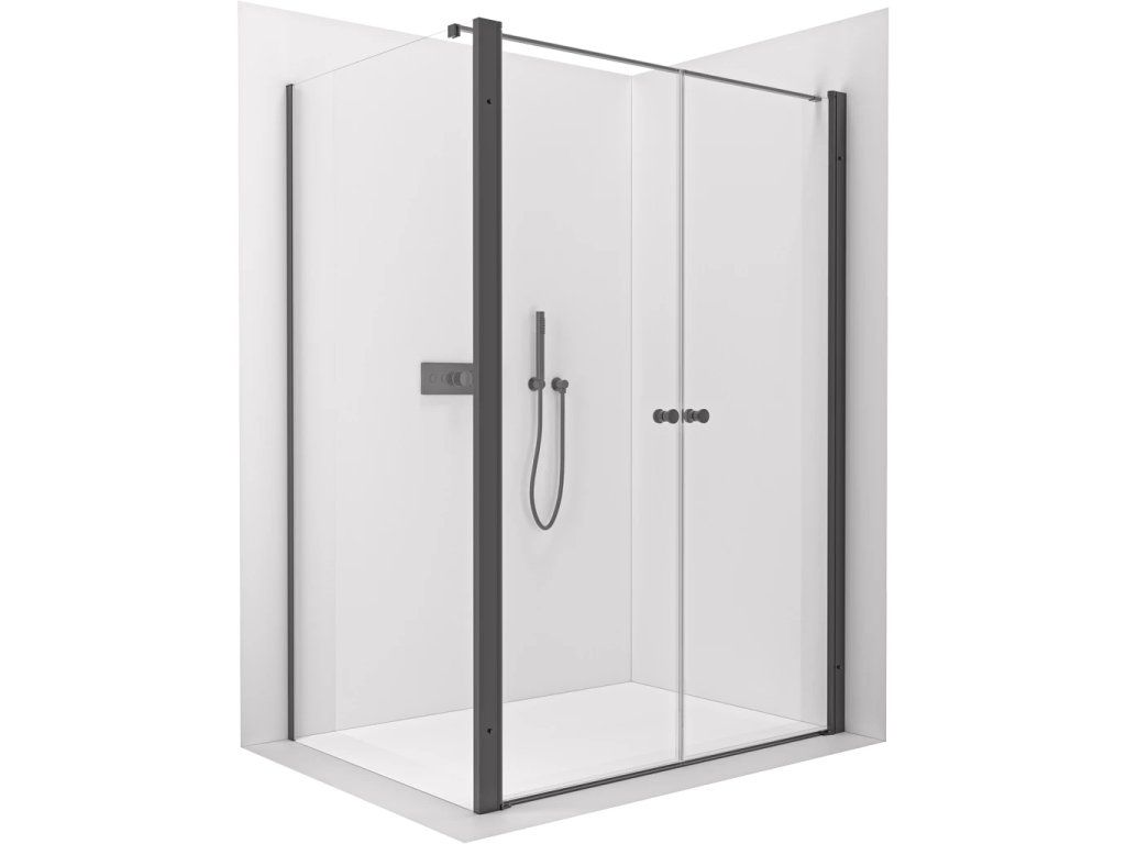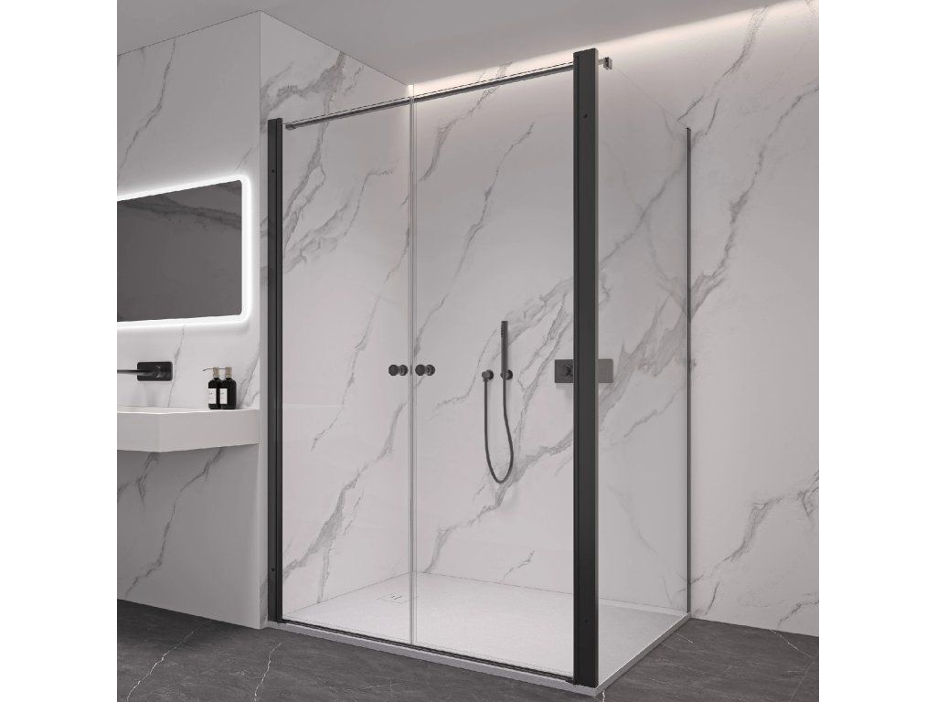 CERANO - Kabina prysznicowa Antelo L - L/P - 6 mm - matowa czarna, szkło transparentne - 150x100 cm - obrotowa