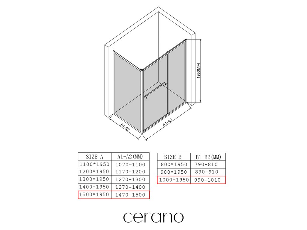 W ramach tej serii oferujemy szeroki wybór wymiarów, aby sprostać zróżnicowanym potrzebom naszych klientów. Wszystkie kabiny prysznicowe, drzwi i parawany CERANO są w pełni kompatybilne z brodzikami CERANO o tych samych wymiarach, co zapewnia bezproblemowy montaż i idealne dopasowanie. Ponadto kabinę można elastycznie zamontować – na pasującym brodziku lub bezpośrednio na podłodze, w zależności od preferencji i wyposażenia łazienki.