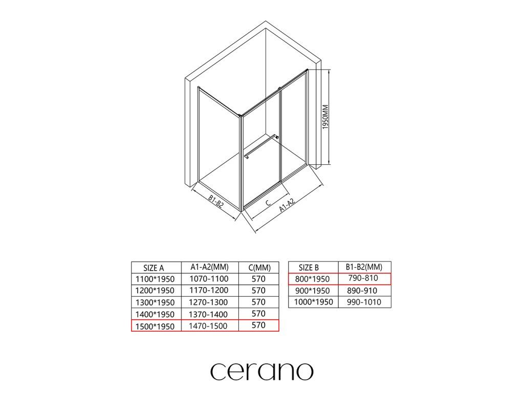 W ramach tej serii oferujemy szeroki wybór wymiarów, aby sprostać zróżnicowanym potrzebom naszych klientów. Wszystkie kabiny prysznicowe, drzwi i parawany CERANO są w pełni kompatybilne z brodzikami CERANO o tych samych wymiarach, co zapewnia bezproblemowy montaż i idealne dopasowanie. Ponadto kabinę można elastycznie zamontować – na pasującym brodziku lub bezpośrednio na podłodze, w zależności od preferencji i wyposażenia łazienki.
