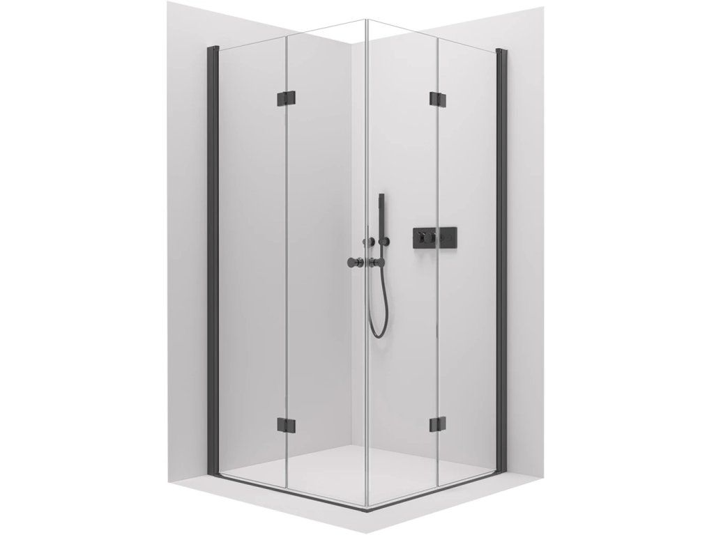CERANO - Kabina prysznicowa Volpe Duo L/R - 6 mm - matowa czerń, szkło transparentne - 80x70x190 cm - składana