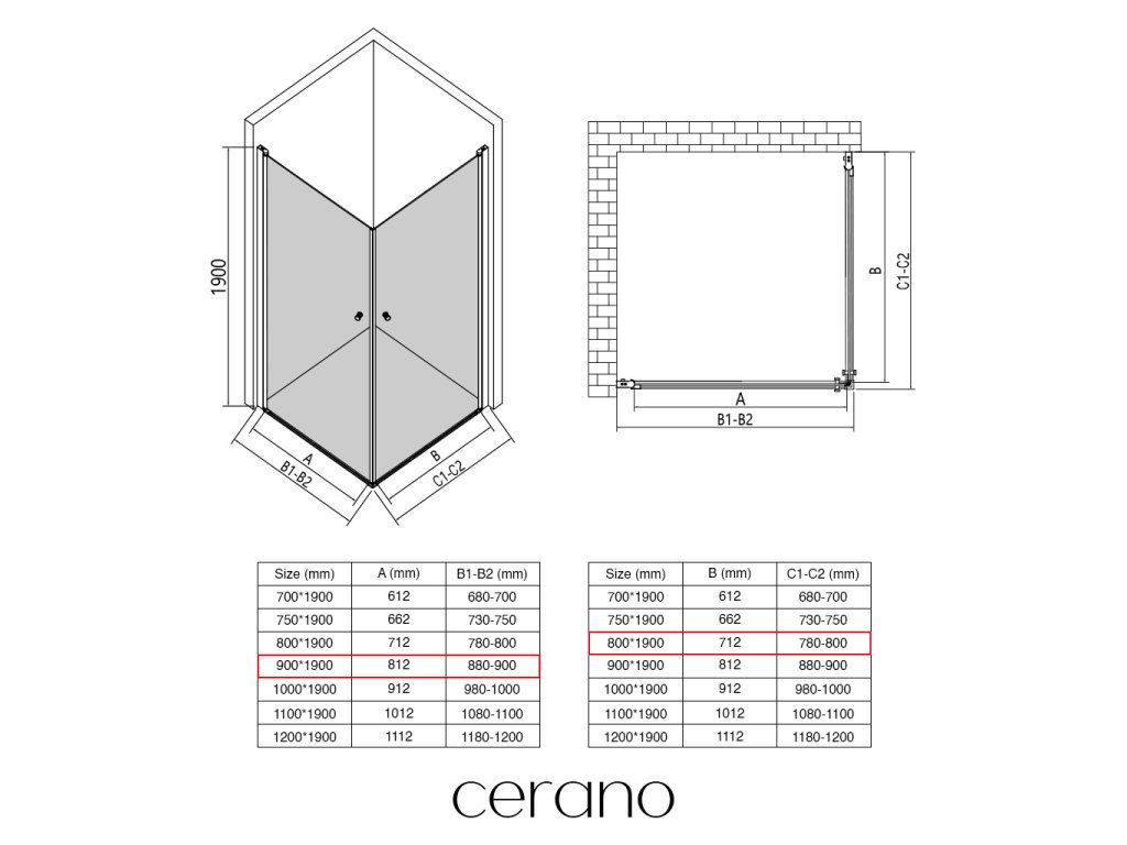 W ramach tej serii oferujemy szeroki wybór wymiarów, aby sprostać zróżnicowanym potrzebom naszych klientów. Wszystkie kabiny prysznicowe, drzwi i parawany CERANO są w pełni kompatybilne z brodzikami CERANO o tych samych wymiarach, co zapewnia bezproblemowy montaż i idealną koordynację.