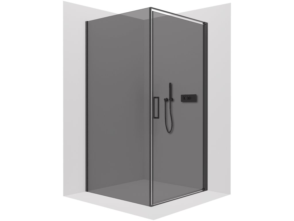 CERANO - Kabina prysznicowa Porte L/R - 8 mm - matowa czerń, szkło grafitowe - 90x80x195 cm - obrotowa