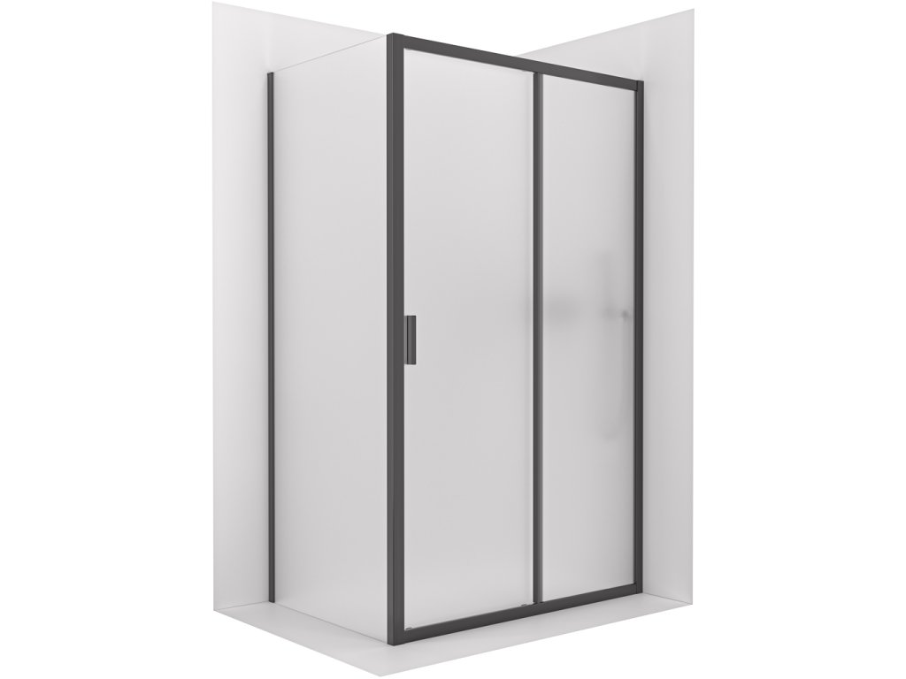 CERANO - Kabina prysznicowa Varone LINE L/R - 6 mm - matowa czerń, szkło mrożone - 90x80 cm - przesuwna