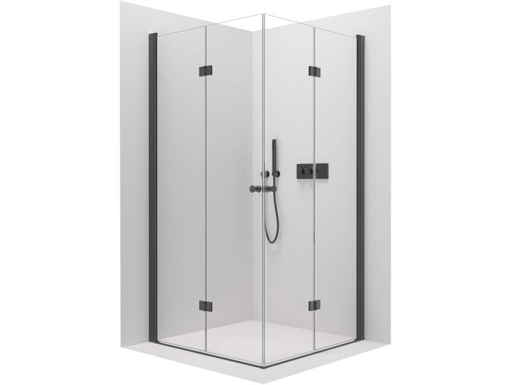 CERANO - Kabina prysznicowa Volpe Duo L/R - 6 mm - matowa czerń, szkło transparentne - 90x60x190 cm - składana