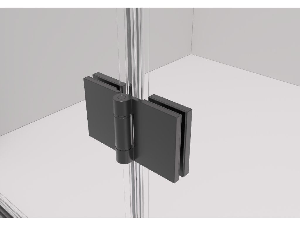Drzwi posiadają składany system otwierania, idealny do mniejszych łazienek z ograniczoną przestrzenią przed prysznicem. Drzwi zawieszone są na wpuszczanych zawiasach z pneumatycznym systemem podnoszenia.