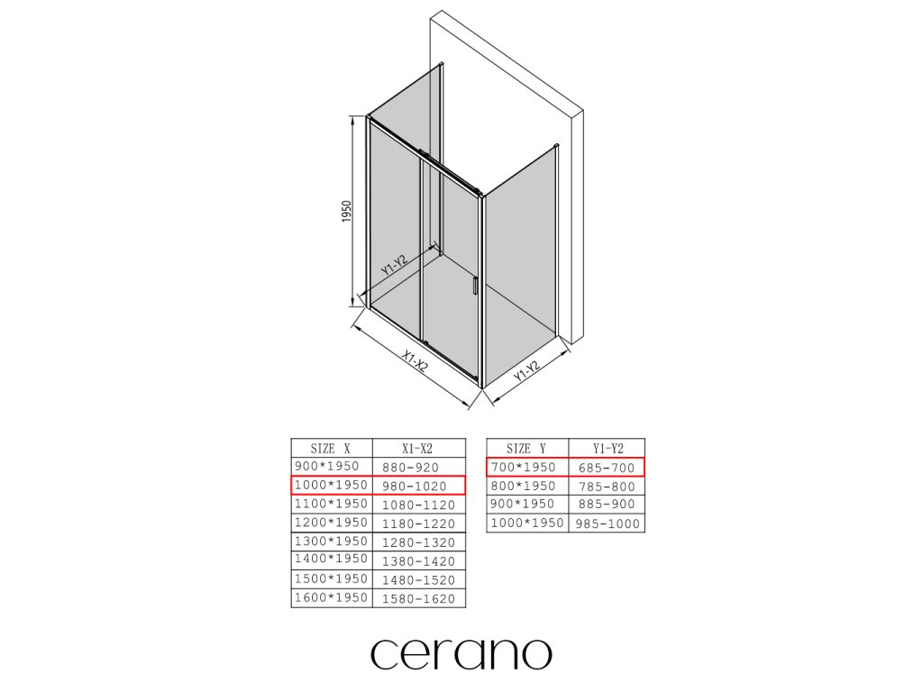 W ramach tej serii oferujemy szeroki wybór wymiarów, aby sprostać zróżnicowanym potrzebom naszych klientów. Wszystkie kabiny prysznicowe, drzwi i parawany CERANO są w pełni kompatybilne z brodzikami CERANO o tych samych wymiarach, co zapewnia bezproblemowy montaż i idealne dopasowanie. Ponadto kabinę można elastycznie zamontować – na pasującym brodziku lub bezpośrednio na podłodze, w zależności od preferencji i wyposażenia łazienki.