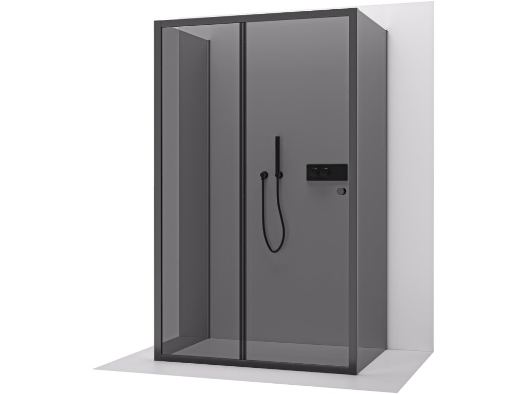 CERANO - Kabina prysznicowa trójścienna Varone POINT UL/P - 6 mm - matowa czerń, szkło grafitowe - 100x80x195 cm - przesuwna