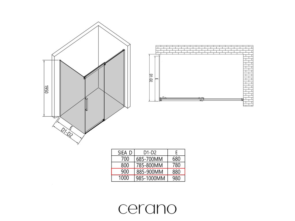 CERANO - Ściana boczna Lantono - prawa - 8 mm - chrom, szkło matowe - 90x195 cm - jednoczęściowa, stała