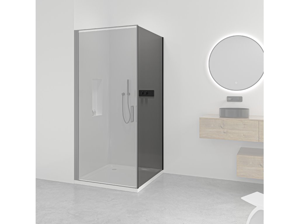CERANO - Ściana boczna Porte L/R - 8 mm - matowa czerń, szkło grafitowe - 100x195 cm