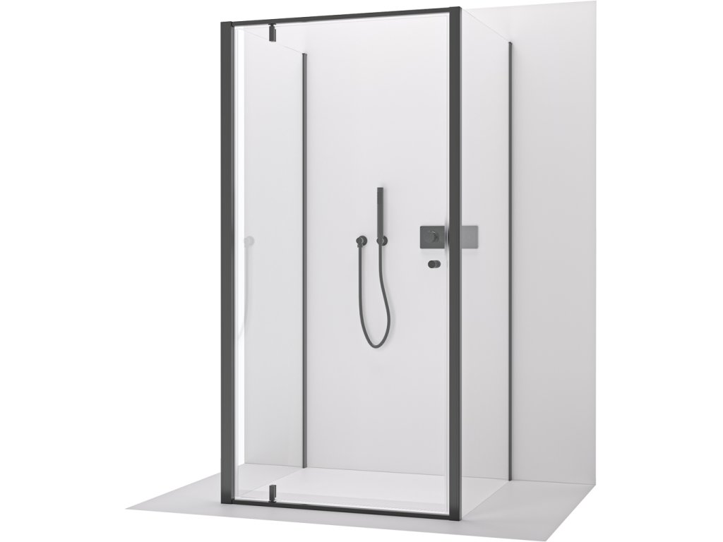 CERANO - Kabina prysznicowa trójścienna Ferri UL/P - 6 mm - matowa czerń, szkło transparentne - 80x90x195 cm - obrotowa