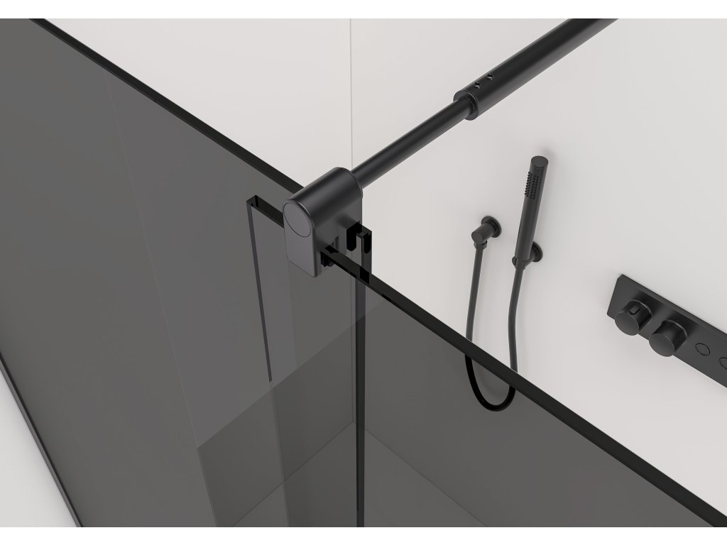 CERANO - Ścianka kabiny prysznicowej typu walk-in Medin L/P - 8 mm - matowa czerń, szkło grafitowe - 120x195 cm - przesuwna dwuczęściowa