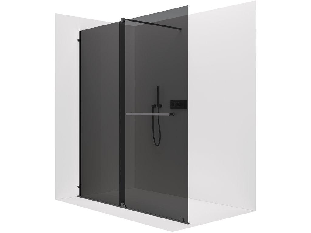 CERANO - Ścianka kabiny prysznicowej typu walk-in Medin L/P - 8 mm - matowa czerń, szkło grafitowe - 150x195 cm - przesuwna dwuczęściowa