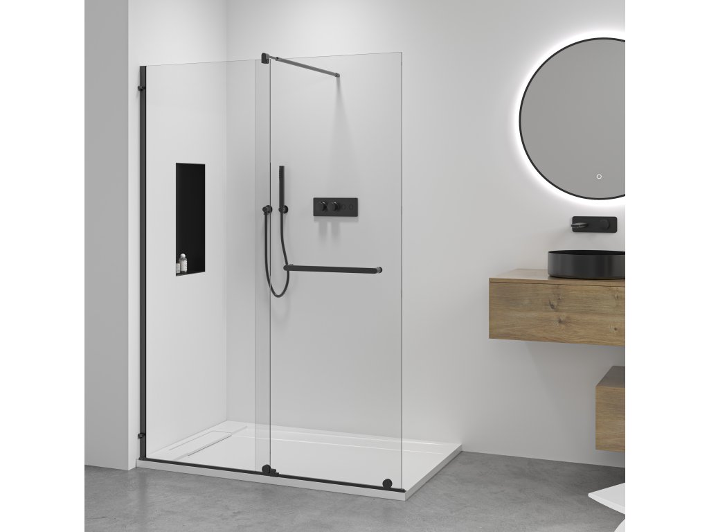 CERANO - Ścianka kabiny prysznicowej typu walk-in Medin L/P - 8 mm - matowa czerń, szkło transparentne - 170x195 cm - przesuwna dwuczęściowa
