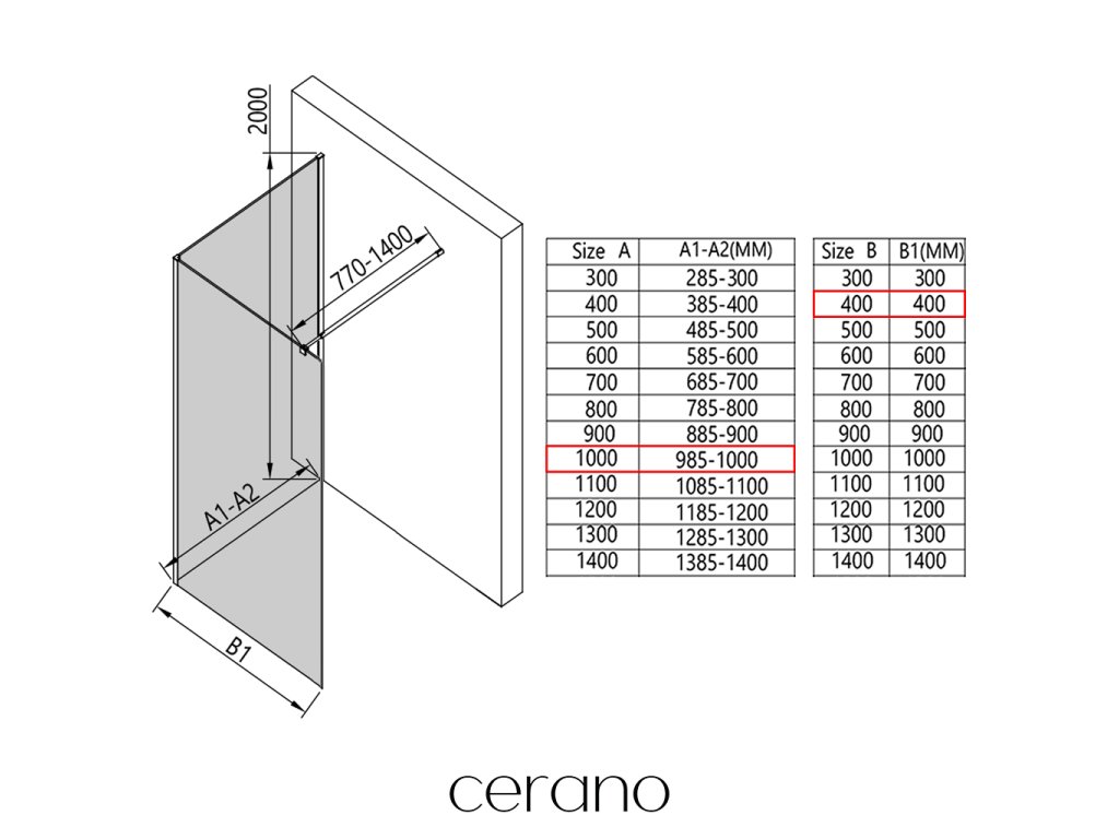 W ramach tej serii oferujemy szeroki wybór wymiarów, aby sprostać zróżnicowanym potrzebom naszych klientów. Wszystkie kabiny prysznicowe, drzwi i parawany Cerano są w pełni kompatybilne z brodzikami Cerano o tych samych wymiarach, co zapewnia bezproblemowy montaż i idealne dopasowanie. Ponadto kabinę prysznicową można elastycznie zamontować – na pasującym brodziku lub bezpośrednio na podłodze, w zależności od preferencji i wyposażenia łazienki.