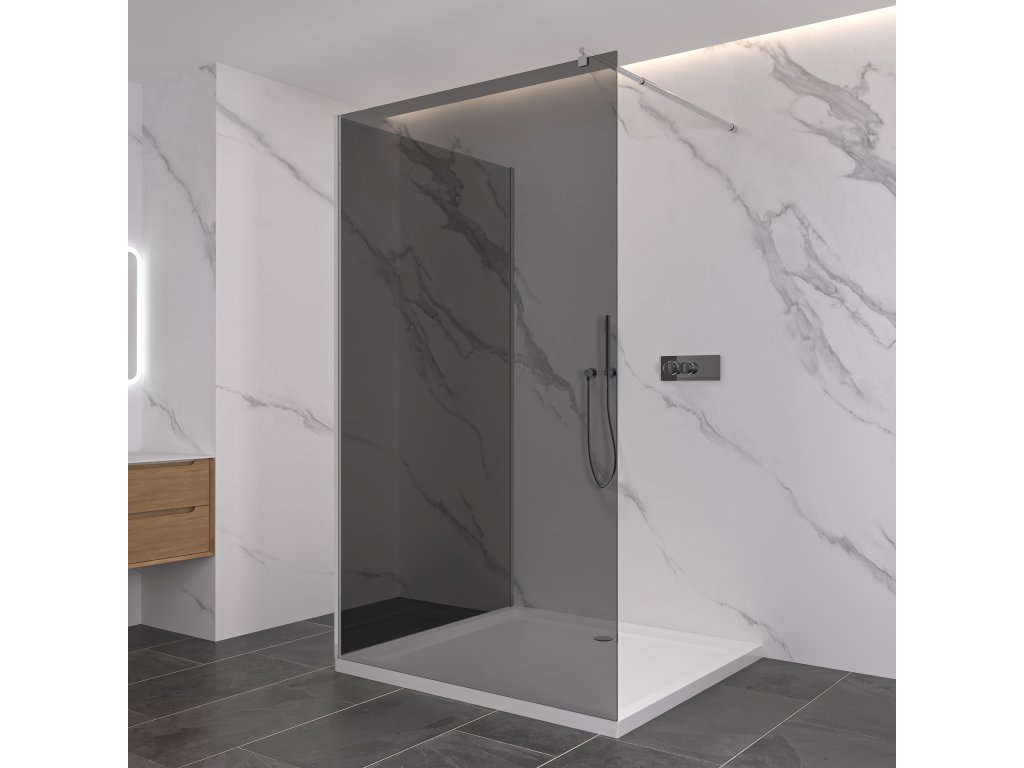 CERANO - Kabina prysznicowa typu walk-in Onyx Narożna Zaokrąglona L/P - 8 mm - wspornik okrągły - chrom, szkło grafitowe - 100x80x200 cm