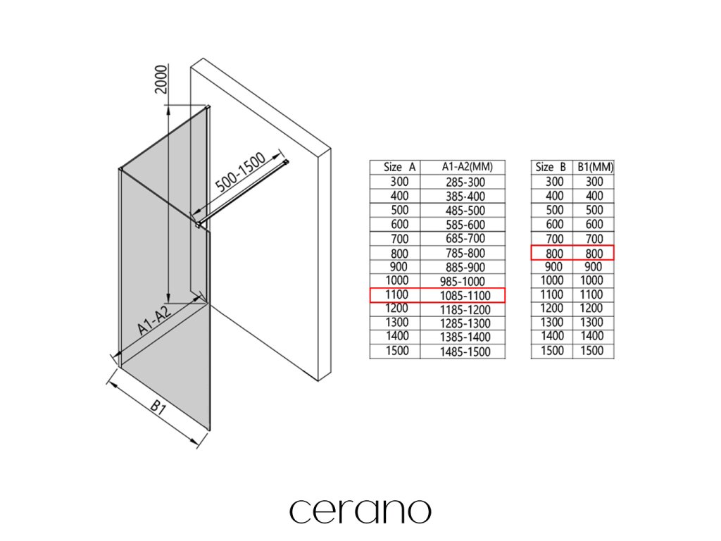 W ramach tej serii oferujemy szeroki wybór wymiarów, aby sprostać zróżnicowanym potrzebom naszych klientów. Wszystkie kabiny prysznicowe, drzwi i parawany Cerano są w pełni kompatybilne z brodzikami Cerano o tych samych wymiarach, co zapewnia bezproblemowy montaż i idealne dopasowanie. Ponadto kabinę prysznicową można elastycznie zamontować – na pasującym brodziku lub bezpośrednio na podłodze, w zależności od preferencji i wyposażenia łazienki.