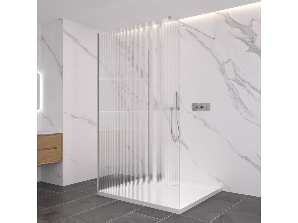 CERANO - Kabina prysznicowa typu walk-in Onyx Corner Cube L/P - 8 mm - wspornik kwadratowy - chrom, szkło ryflowane - 130x100x200 cm