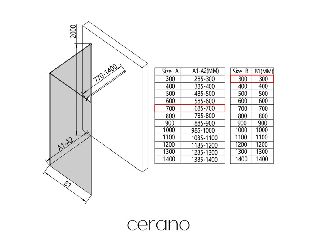 W ramach tej serii oferujemy szeroki wybór wymiarów, aby sprostać zróżnicowanym potrzebom naszych klientów. Wszystkie kabiny prysznicowe, drzwi i parawany Cerano są w pełni kompatybilne z brodzikami Cerano o tych samych wymiarach, co zapewnia bezproblemowy montaż i idealne dopasowanie. Ponadto kabinę prysznicową można elastycznie zamontować – na pasującym brodziku lub bezpośrednio na podłodze, w zależności od preferencji i wyposażenia łazienki.