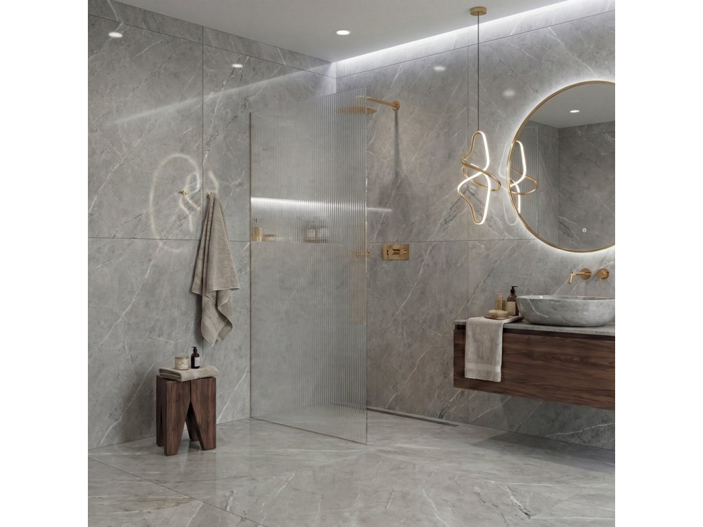 Dzięki wyrafinowanej konstrukcji szkło jest ukryte w profilach, które można całkowicie lub częściowo wpuścić w płytki lub kostkę brukową (do 14 mm). Bez przeszkadzających elementów konstrukcyjnych , powstaje czyste, eleganckie rozwiązanie , które podkreśla nowoczesny wygląd łazienki i nadaje jej maksymalną lekkość wizualną.