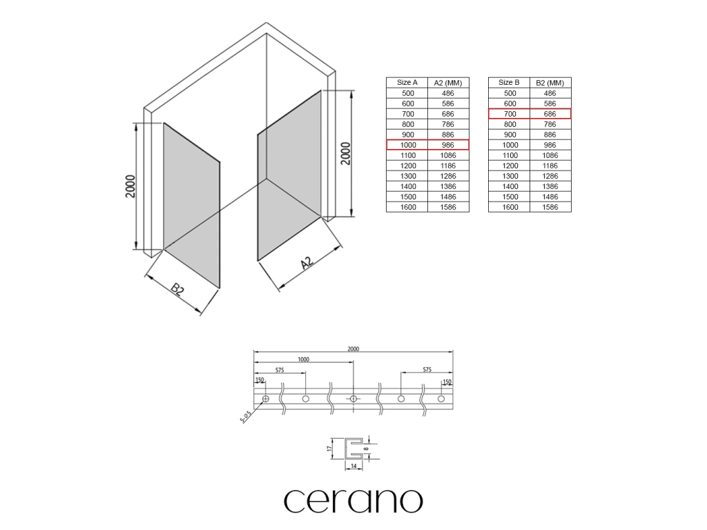 W ramach tej serii oferujemy szeroki wybór wymiarów , aby sprostać zróżnicowanym potrzebom naszych klientów. Wszystkie kabiny prysznicowe, drzwi i parawany Cerano są w pełni kompatybilne z brodzikami Cerano o tych samych wymiarach, co zapewnia bezproblemowy montaż i idealne dopasowanie. Ponadto, kabinę prysznicową można elastycznie zamontować – na pasującym brodziku lub bezpośrednio na podłodze , w zależności od preferencji i wyposażenia łazienki.