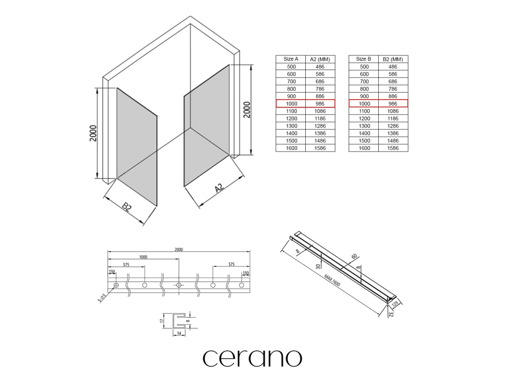 W ramach tej serii oferujemy szeroki wybór wymiarów , aby sprostać zróżnicowanym potrzebom naszych klientów. Wszystkie kabiny prysznicowe, drzwi i parawany Cerano są w pełni kompatybilne z brodzikami Cerano o tych samych wymiarach, co zapewnia bezproblemowy montaż i idealne dopasowanie. Ponadto, kabinę prysznicową można elastycznie zamontować – na pasującym brodziku lub bezpośrednio na podłodze , w zależności od preferencji i wyposażenia łazienki.