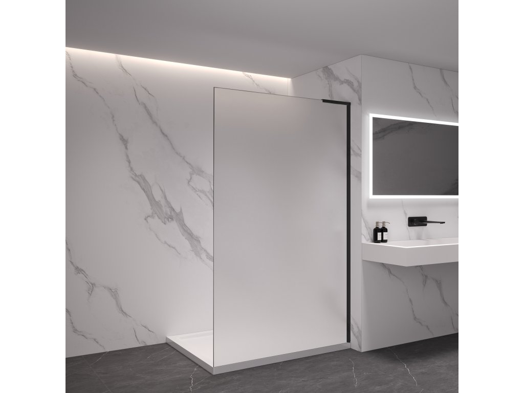 CERANO - Kabina prysznicowa typu walk-in Onyx L-prawa rozpórka - 8 mm - matowa czerń, szkło mrożone - 100x200 cm