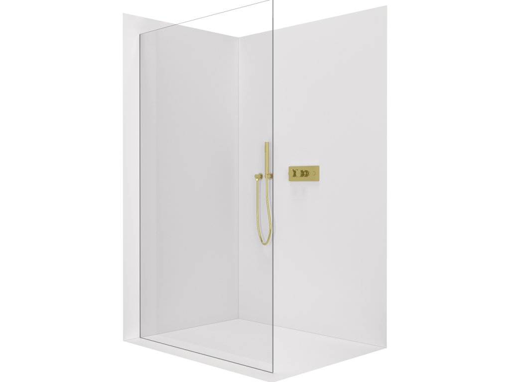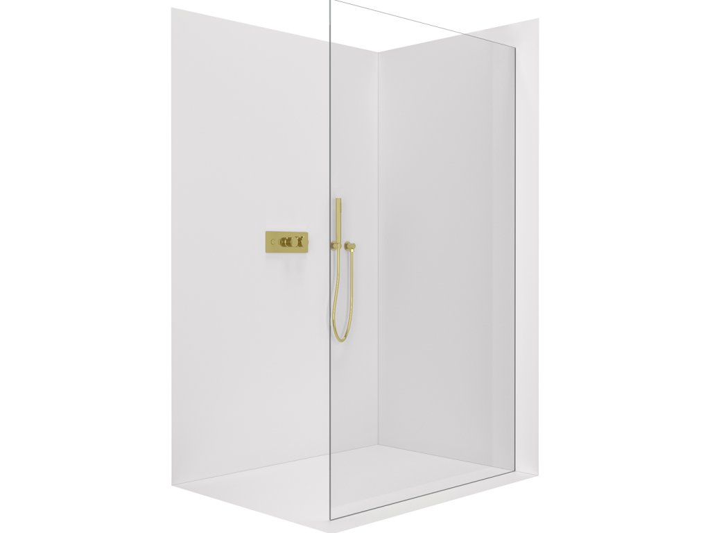 CERANO - Kabina prysznicowa typu walk-in Crystal L/R - 8 mm - system bez rozpórek - szczotkowane złoto, szkło transparentne - 110x200 cm