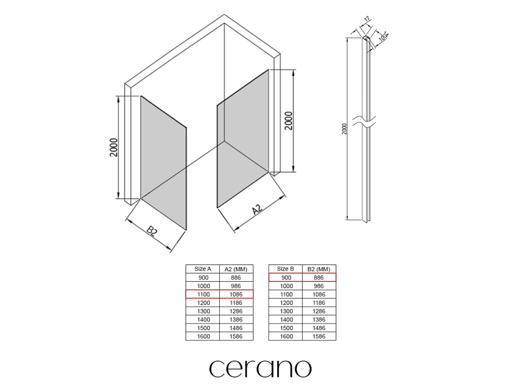 W ramach tej serii oferujemy szeroki wybór wymiarów , aby sprostać zróżnicowanym potrzebom naszych klientów. Wszystkie kabiny prysznicowe, drzwi i parawany Cerano są w pełni kompatybilne z brodzikami Cerano o tych samych wymiarach, co zapewnia bezproblemowy montaż i idealne dopasowanie. Ponadto, kabinę prysznicową można elastycznie zamontować – na pasującym brodziku lub bezpośrednio na podłodze , w zależności od preferencji i wyposażenia łazienki.