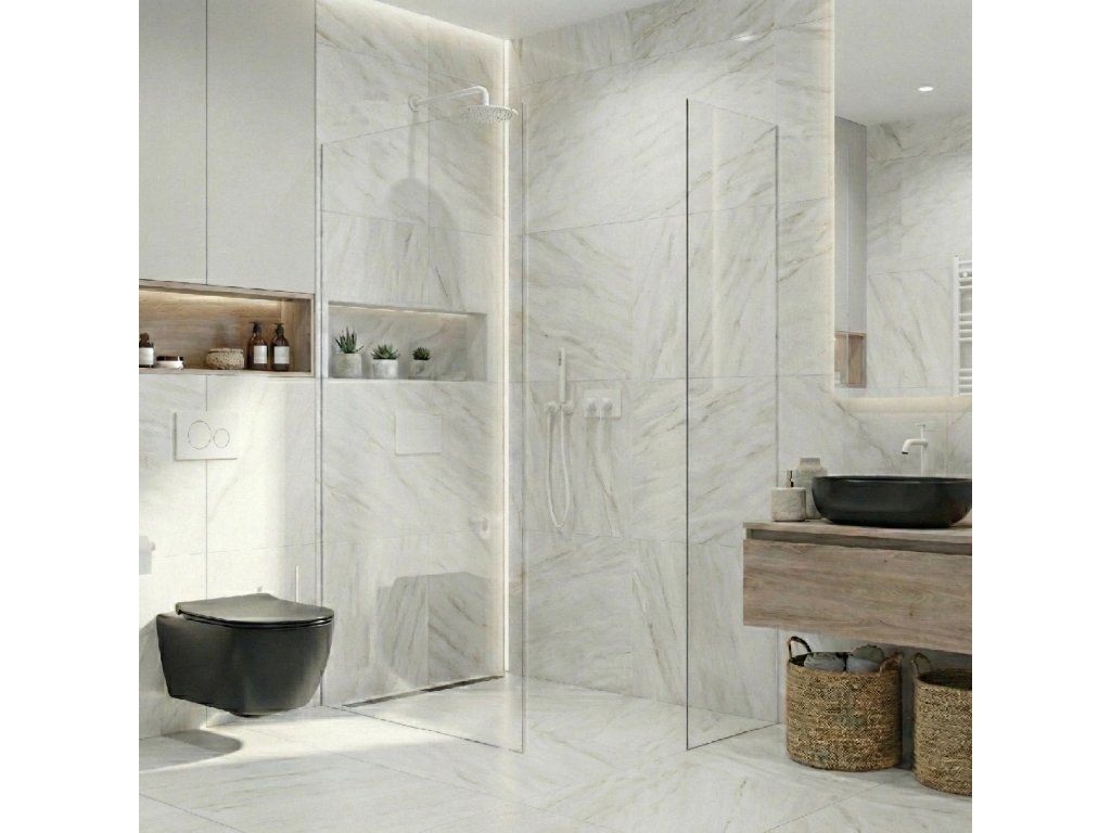 Dzięki wyrafinowanej konstrukcji szkło jest ukryte w profilach, które można całkowicie lub częściowo wpuścić w płytki lub kostkę brukową (do 14 mm). Bez przeszkadzających elementów konstrukcyjnych , powstaje czyste, eleganckie rozwiązanie , które podkreśla nowoczesny wygląd łazienki i nadaje jej maksymalną lekkość wizualną.