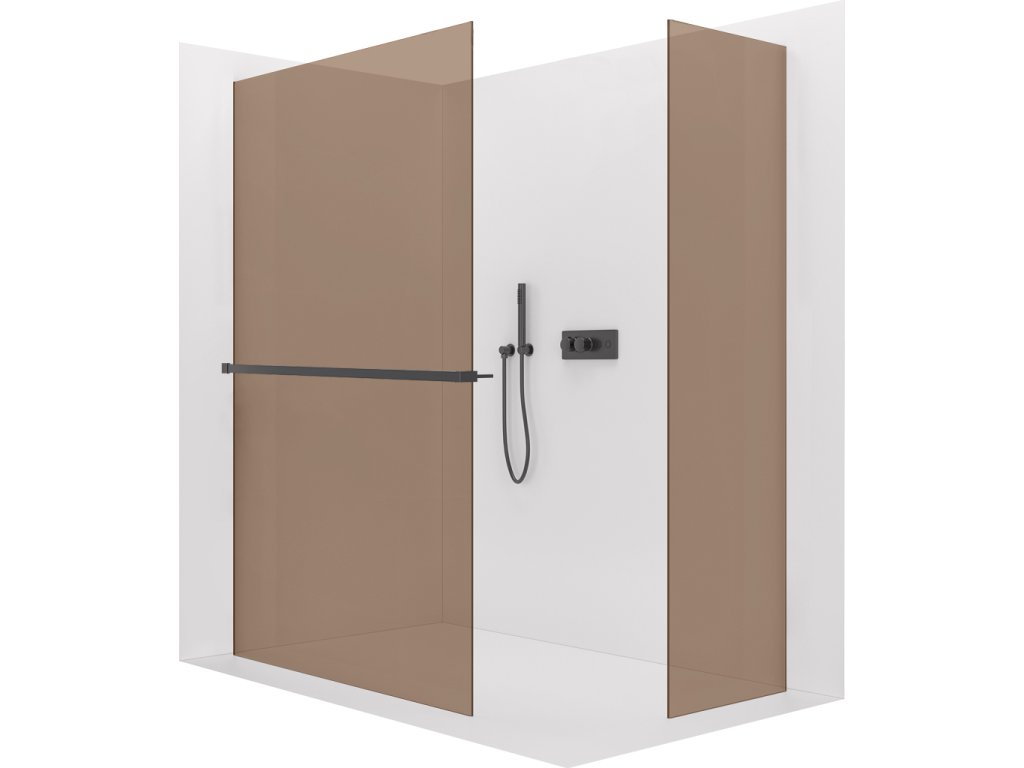 CERANO - Kabina prysznicowa typu walk-in Crystal TL/P - 8 mm - system bezpodporowy + półka/uchwyt na ręcznik - matowa czerń, szkło brązowe - 110x90x200 cm