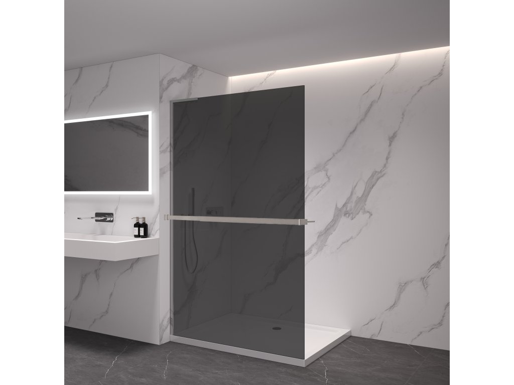 CERANO - Kabina prysznicowa typu walk-in Onyx L-lewy wspornik - 8 mm + półka/uchwyt na ręcznik - chrom, szkło grafitowe - 110x200 cm