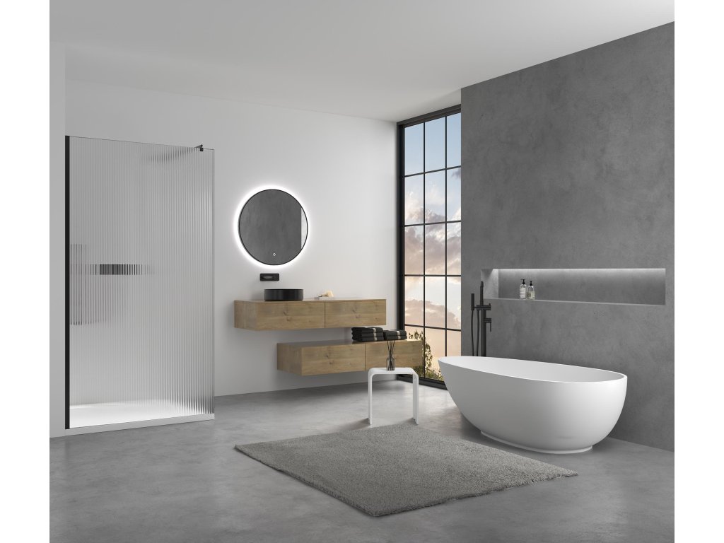CERANO - Kabina prysznicowa typu walk-in Onyx Round L/P - 8 mm - wspornik okrągły - mat czarny, szkło ryflowane - 110x200 cm
