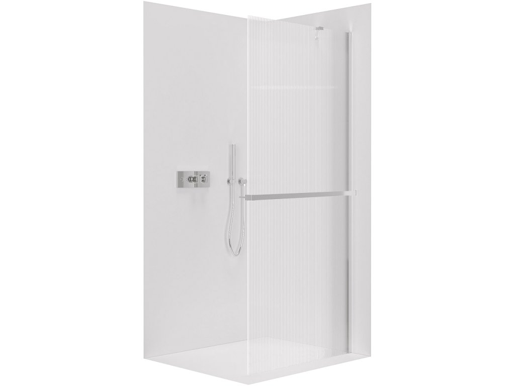 CERANO - Parawan prysznicowy typu walk-in Onyx YL/P - 8 mm + półka/uchwyt na ręcznik - chrom, szkło ryflowane - 110x200 cm