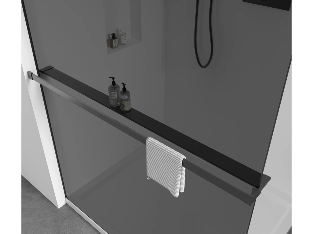 CERANO - Kabina prysznicowa typu walk-in Crystal TL/P - 10 mm - system bezpodporowy + półka/uchwyt na ręcznik - matowa czerń, szkło grafitowe - 120x110x200 cm