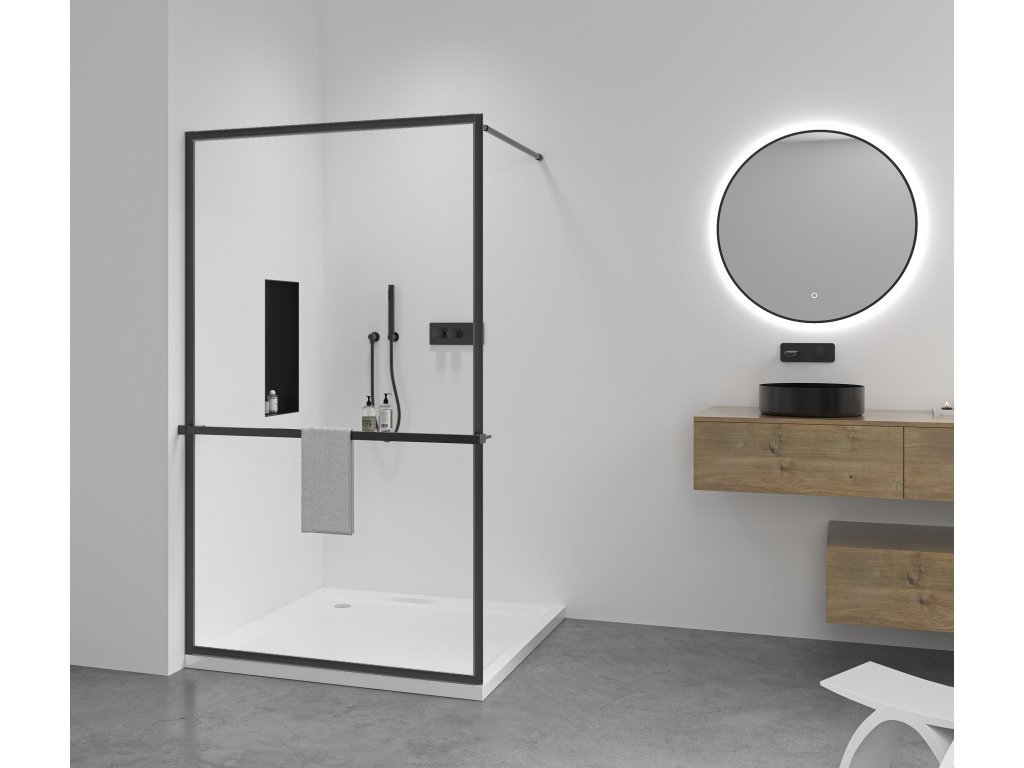 Inteligentne rozwiązanie 2 w 1 do kabin prysznicowych. Zewnętrzny uchwyt na ręczniki, praktyczna półka na kosmetyki i drobiazgi wewnątrz – wszystko pod ręką. Pasuje do kabin prysznicowych o maksymalnej grubości szkła 8 mm . Regulowana szerokość od 30 do 160 cm w zależności od rodzaju kabiny. Oszczędność miejsca, nowoczesny wygląd i praktyczne zastosowanie w jednym.